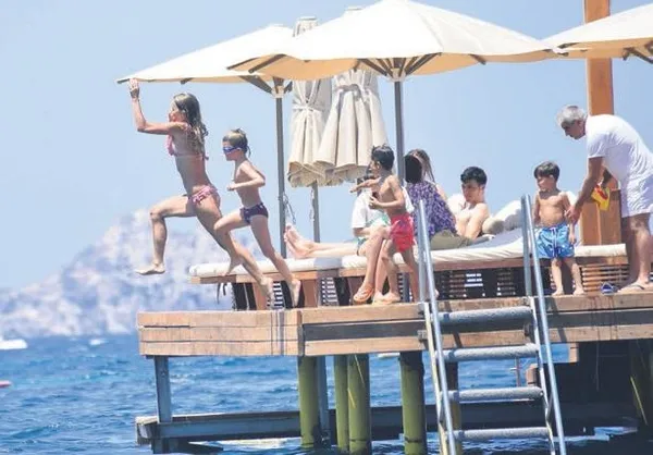 Çok keyifli olduğu her halinden belli olan İşçil’in, denize atlama hareketleri ise herkesin dikkatini çekti. Balıklama, çivileme, bomba derken her türlü atlama stilini deneyen İşçil’e oğlu da eşlik etti.