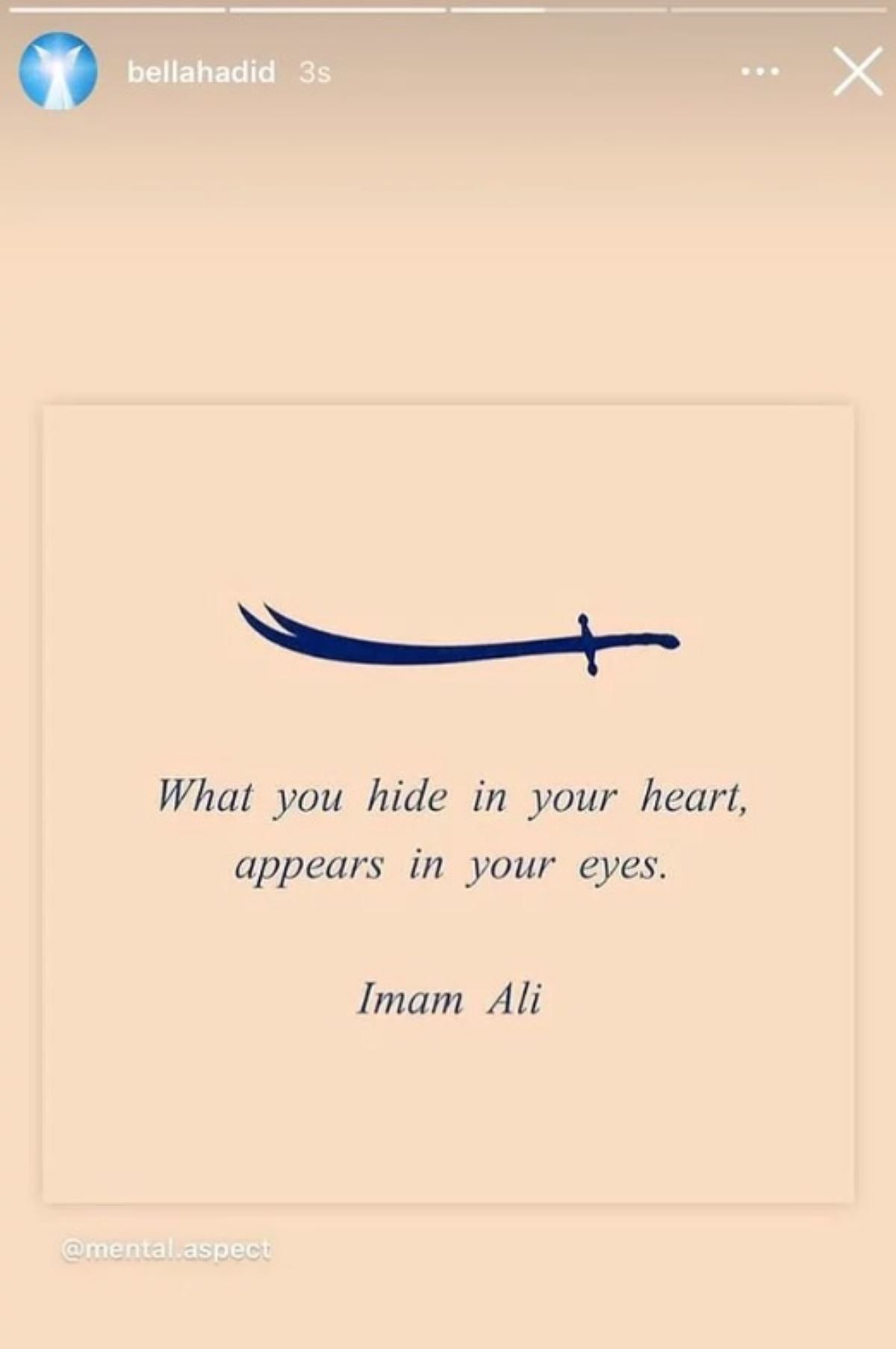 Ünlü model Bella Hadid, Instagram’dan Zülfikar kılıçlı bir paylaşım yapan Hadid, Hz. Ali’nin bir sözüne yer vermesi gündem oldu.