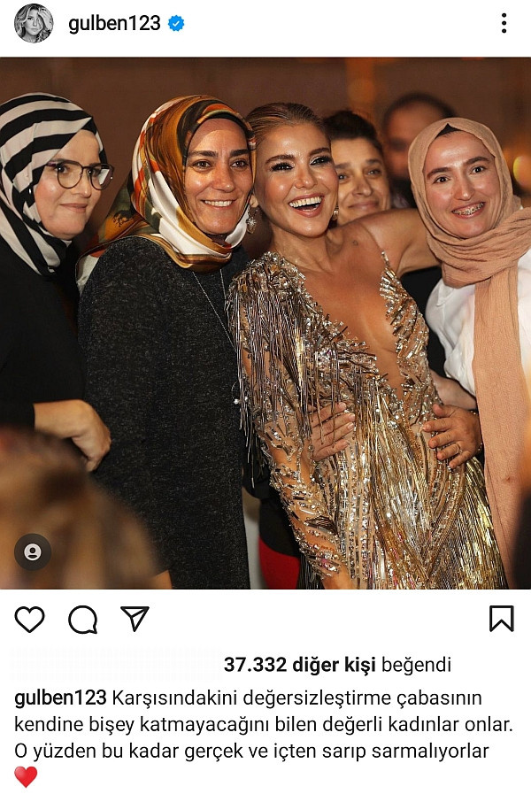 Gülben Ergen bu paylaşımının ardından ise sosyal medya hesabının ‘Hikayeler’ kısmından “Bana Sallamak Bi Demode Olamadı Gitti” notunu Hülya Avşar’ın “Bu Gece Uzun Olacak” şarkısı eşliğinde paylaştı.