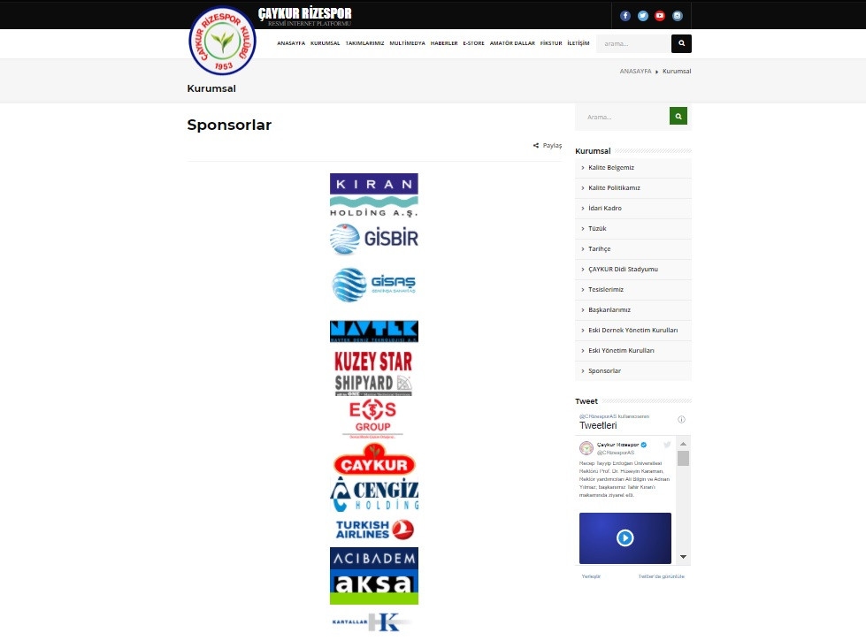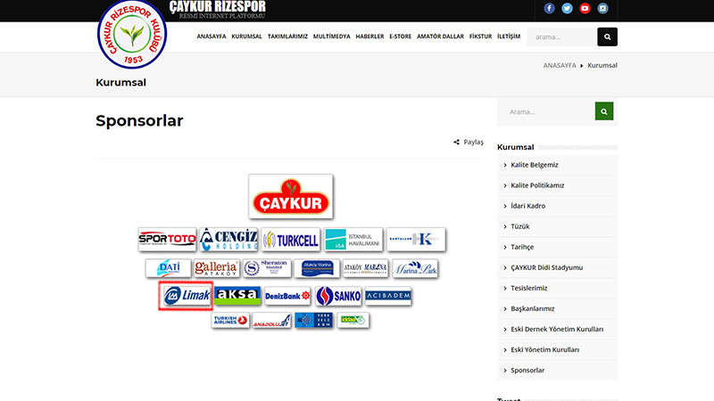Önceki günlerde Rizespor’un resmi sitesinde LİMAK, sponsorları arasında yer alıyor